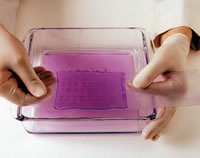 l 薄薄的塑料片易于滑進凝膠下面,進而托起 gel support
