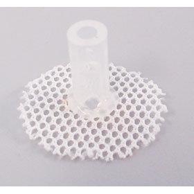 與所有標(biāo)準(zhǔn)的皮膚扣件一樣,小鼠的皮膚扣包括硅膠筒和圓形滌綸網(wǎng)狀小片兩部分,是動物的手術(shù)中不可或缺的物件。硅膠筒內(nèi)徑為0.123英寸;滌綸網(wǎng)狀小片的直徑大約1英寸。皮膚扣作為導(dǎo)管通過皮膚的一個通道,協(xié)助完成導(dǎo)管的取樣或定量給藥工作。皮膚扣可替代小動物的jacket,可保護(hù)導(dǎo)管通過點的皮膚免受損傷,降低感染的幾率。也可與外徑為0.124英寸的標(biāo)準(zhǔn)不銹鋼彈性細(xì)絲完美匹配。