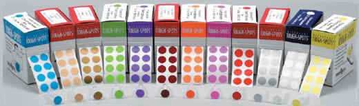 2.激光打印A4標簽: Laser Tough-Spots®,A4紙張大小,每張上面有預制好的圓形小標簽,顏色不同便于分類。