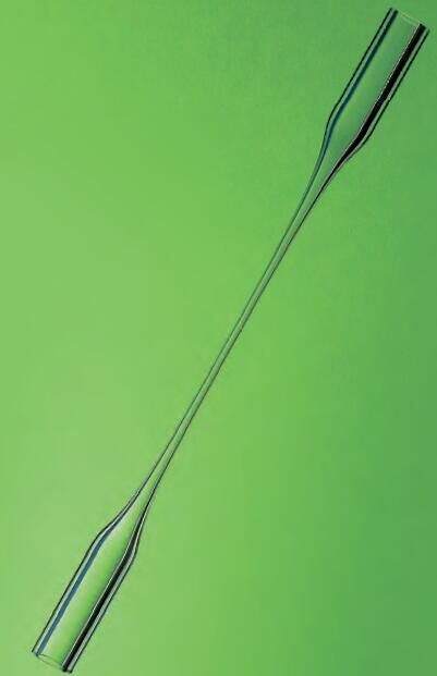 原產(chǎn)德國(guó)的雙漏斗薄壁玻璃毛細(xì)管,由硼硅玻璃制造(borosilicate glass 3.3),這些特殊的樣品管適合于流體測(cè)量。測(cè)量段在毛細(xì)管中部的壁厚僅為20μm左右,兩端壁較厚,便于安裝液體流動(dòng)通道。事實(shí)證明,薄連接軟管最適合這些毛細(xì)管(軟管推薦用軟聚四氟乙烯管)。